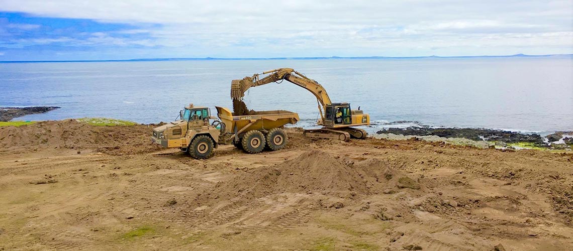 In addition to bulk earthworks on mine sites, Geotech undertakes a range of civil construction earthworks, from residential and commercial excavation and land development, through to bulk cartage, and pond and dam construction.